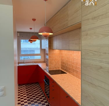 Rénovation complète d’une cuisine avec reprise intégrale des installations.