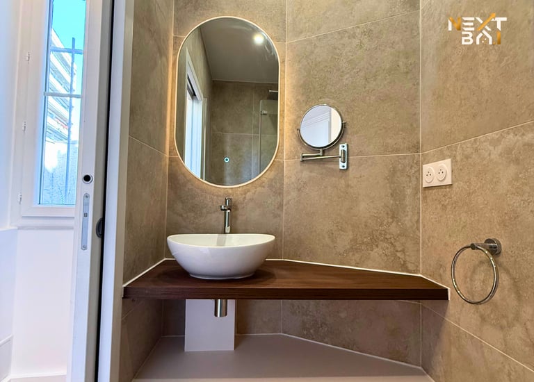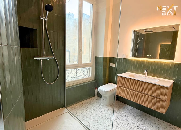 Rénovation complète d’une salle de bain avec modernisation intégrale des installations.